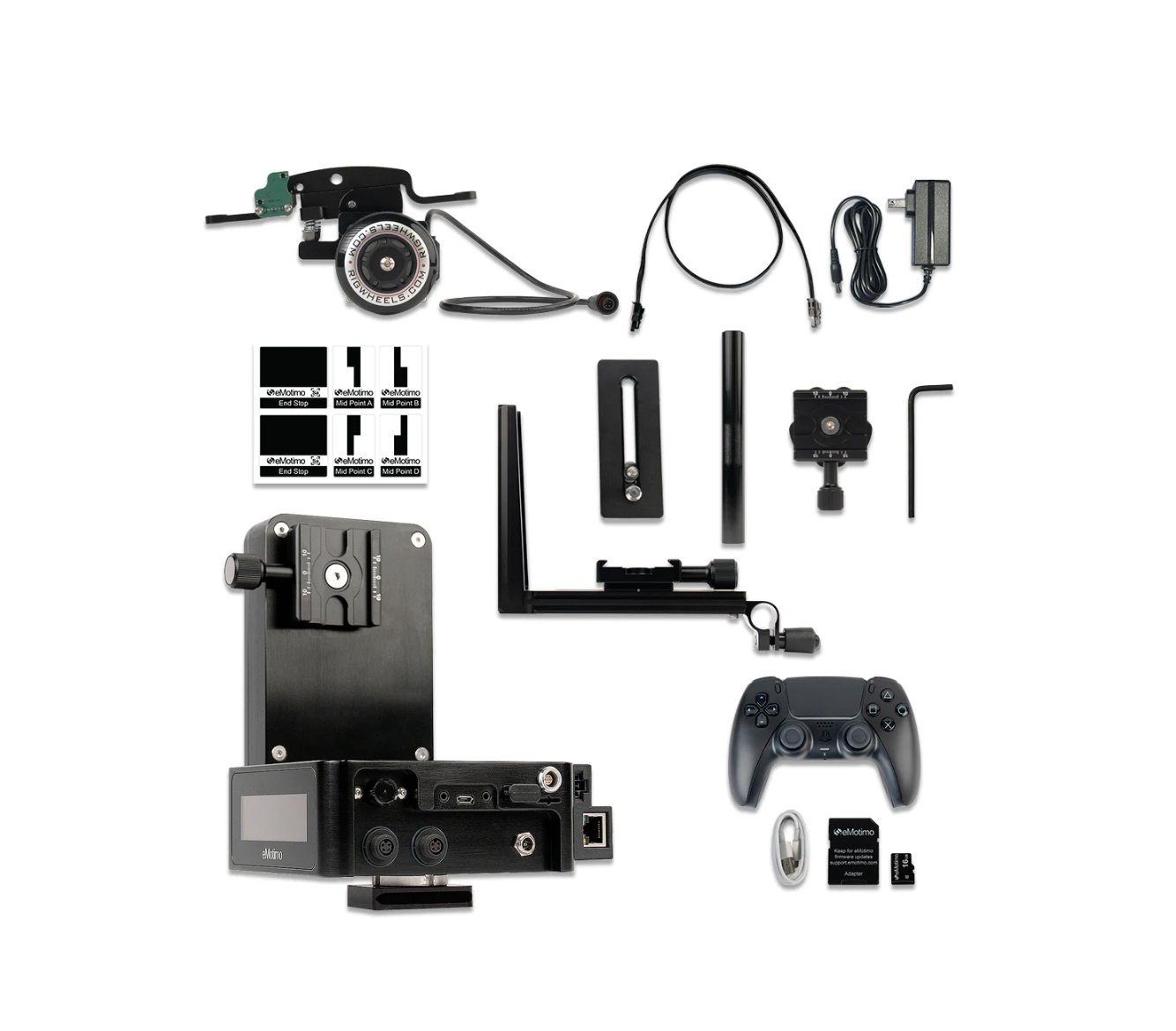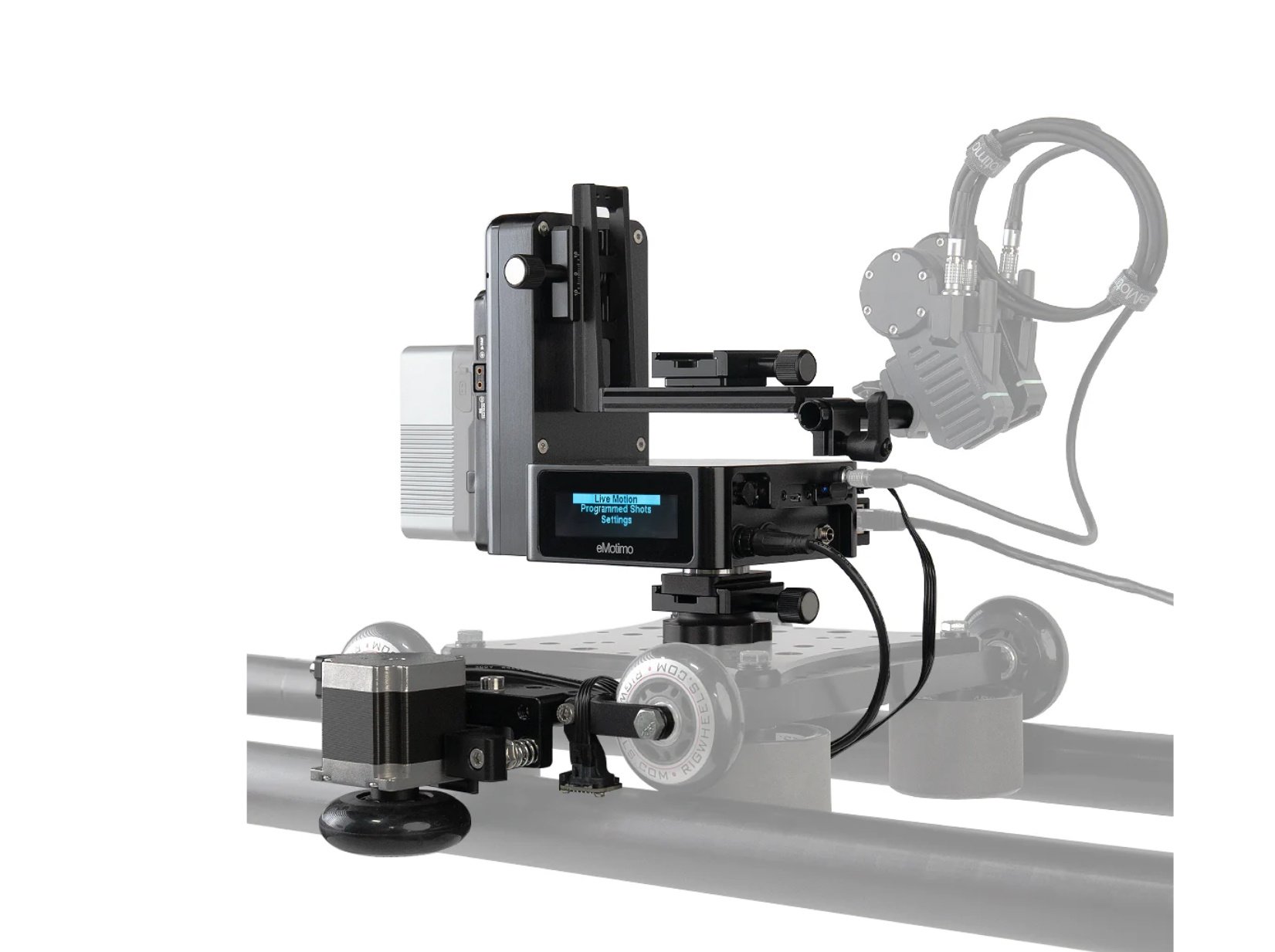 • 4-axis powered motor control (Pan, Tilt, Slide, and M4) for eMotimo motors
