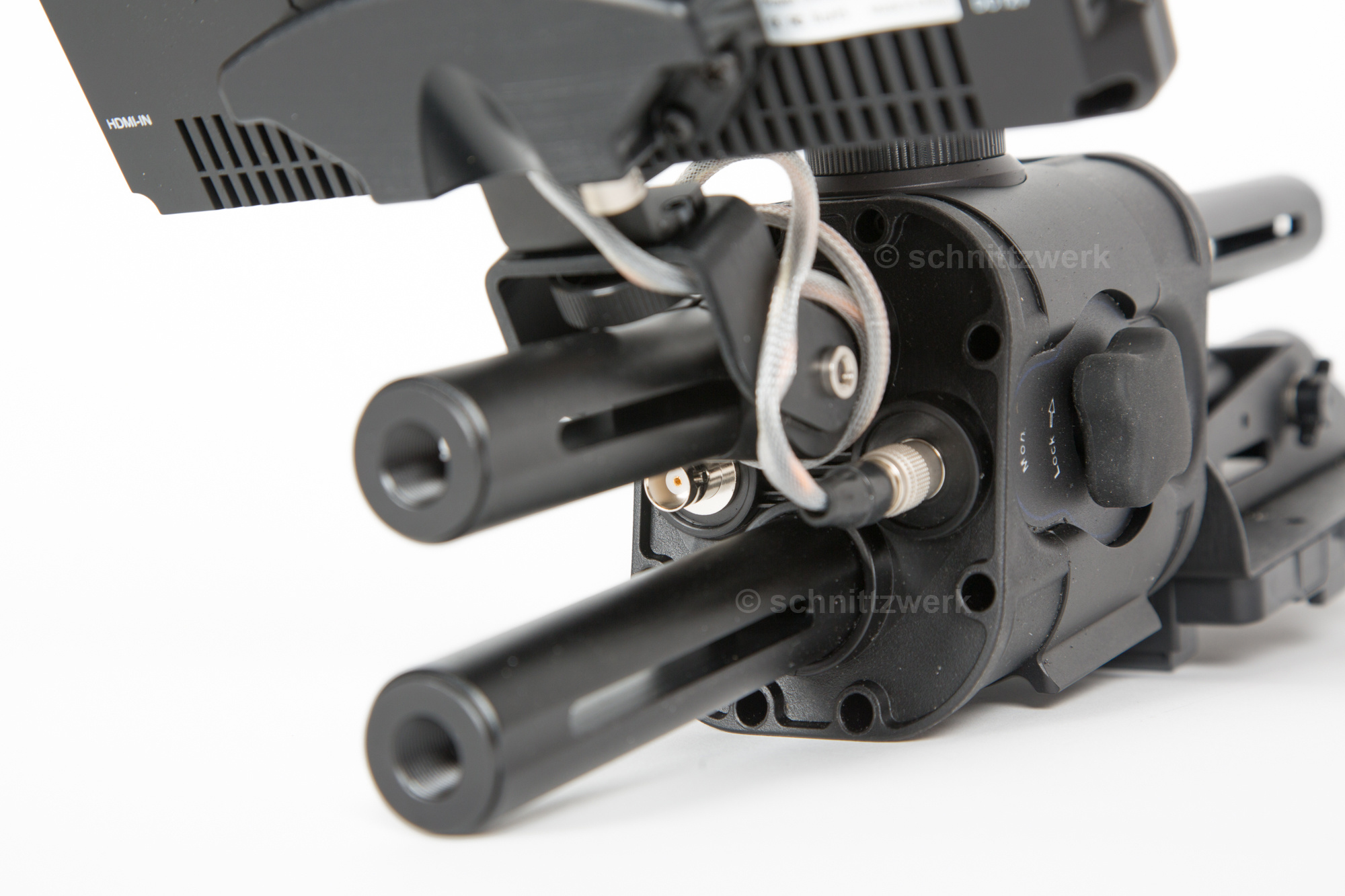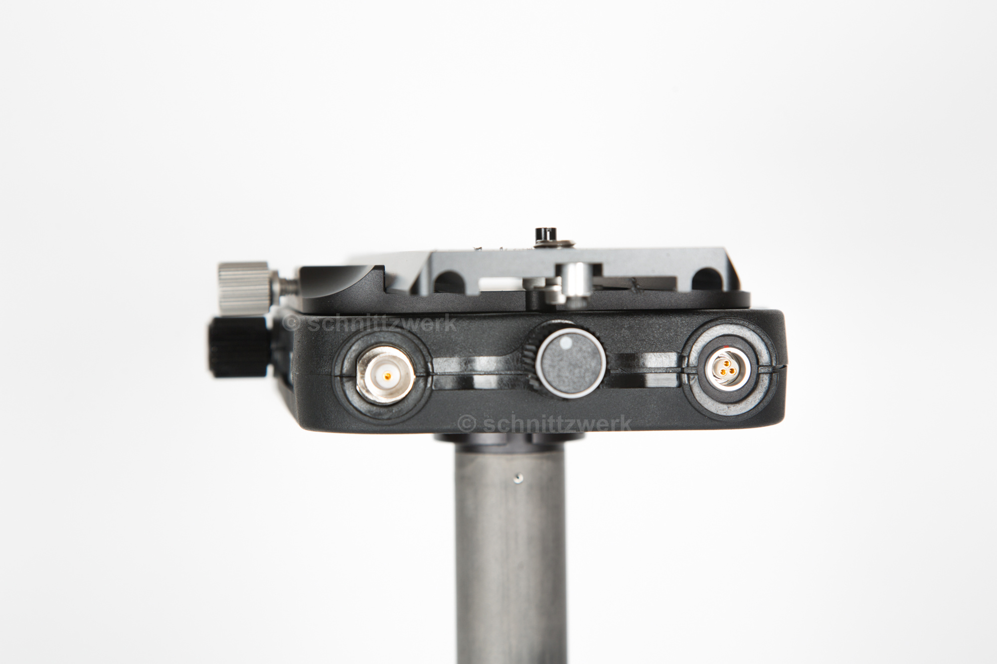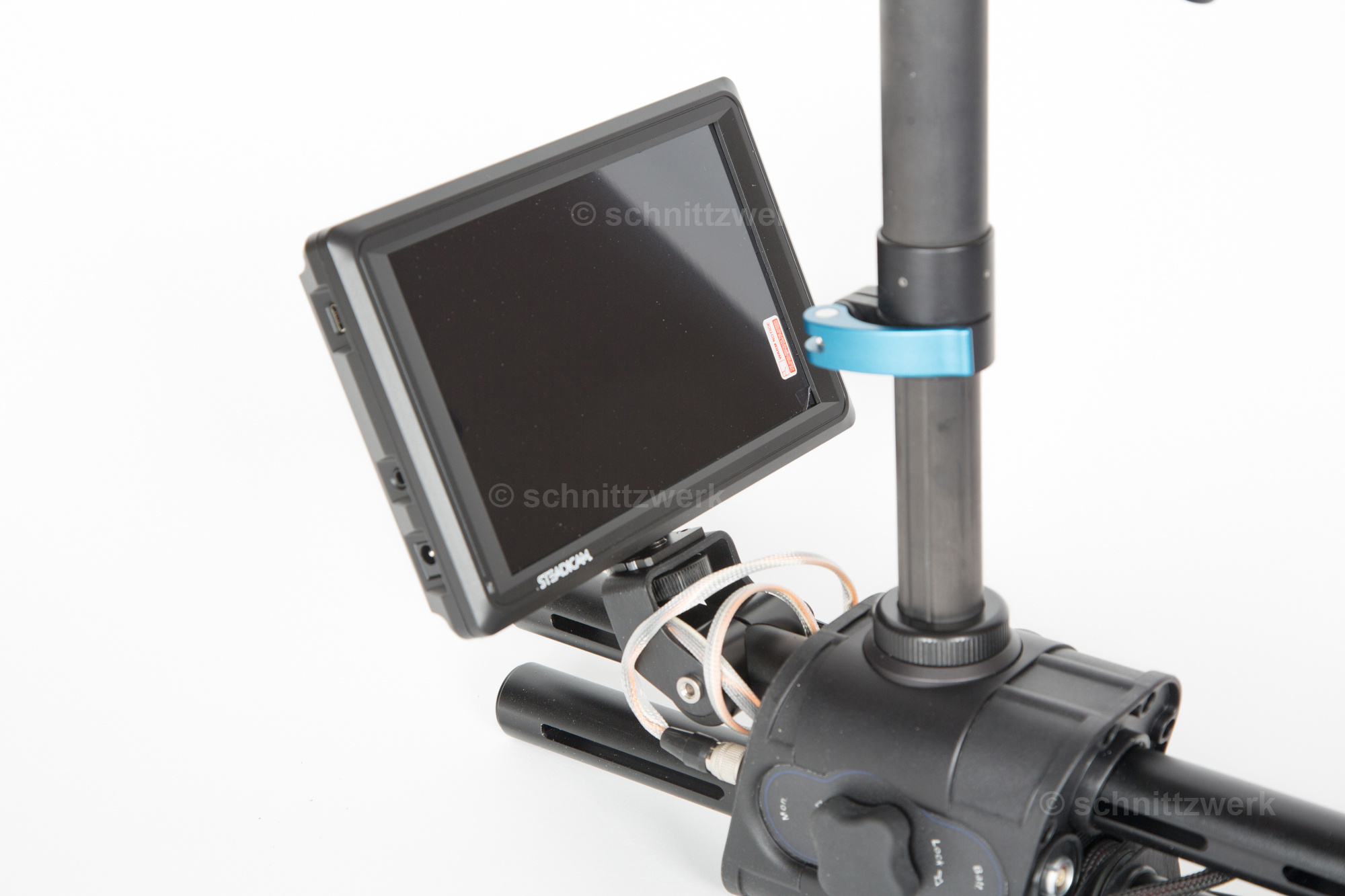 : Inertial control and adjustability via standard Steadicam Merlin type balance weights.