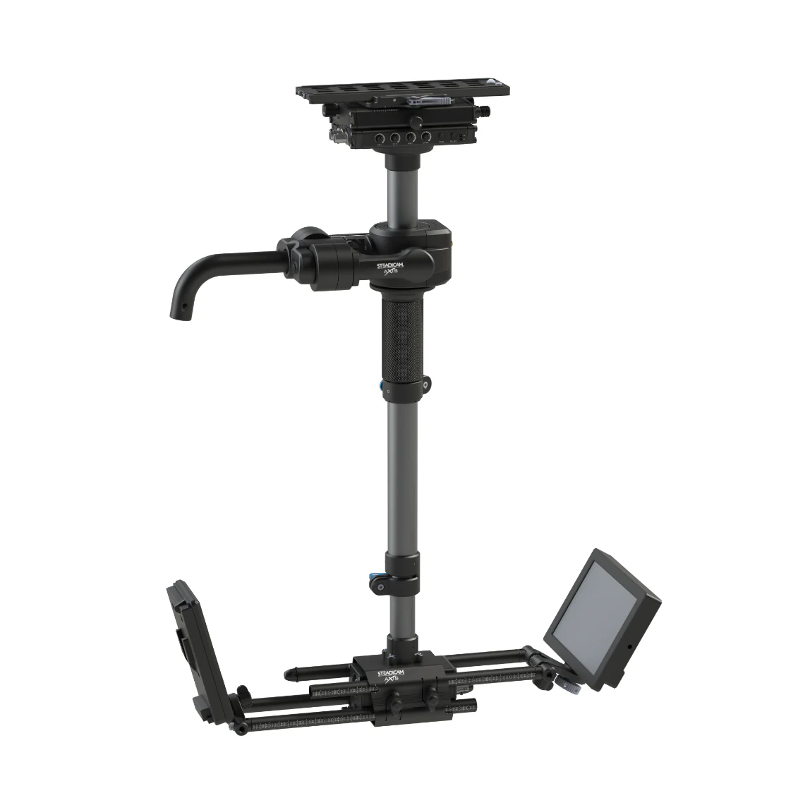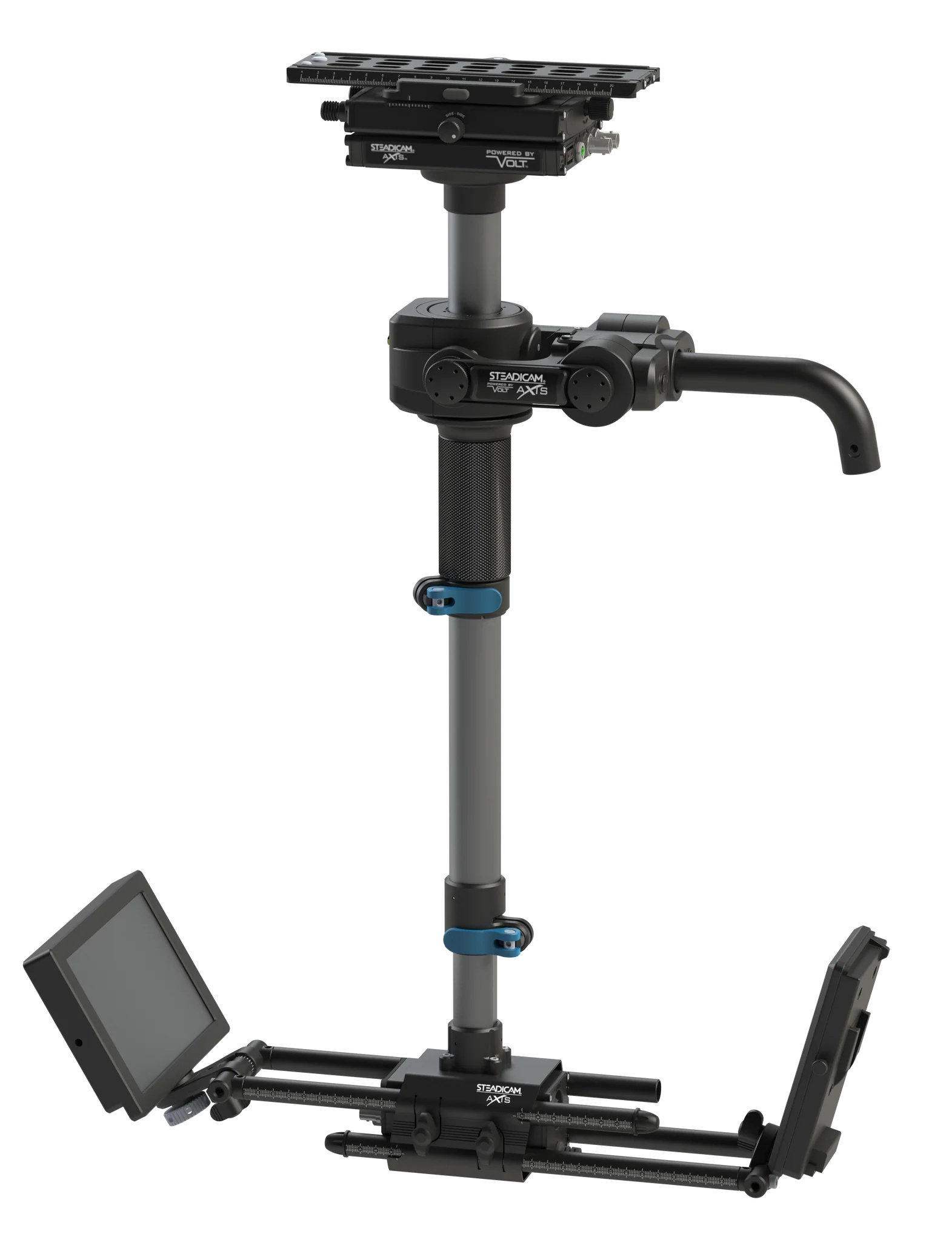 New 3-Axis electronically assisted camera stabilizer incorporating the patented Steadicam Volt technology, augmented with a third pan motor for even more precise camera control. 3-axis assisted stabilization allows the operator to directly control the framing of the shot without feeling disconnected from the camera like in other fly by wire systems. Shallow learning curve for achieving high quality camera movement, with faster set up times and greater range of movement over current electronic gimbal systems. With a payload capacity of up to 20 lbs (9kg) when paired with a Steadicam A-30 Arm & Vest, the Steadicam Axis will take you to a new level of achieving cinema quality shots at an affordable price.