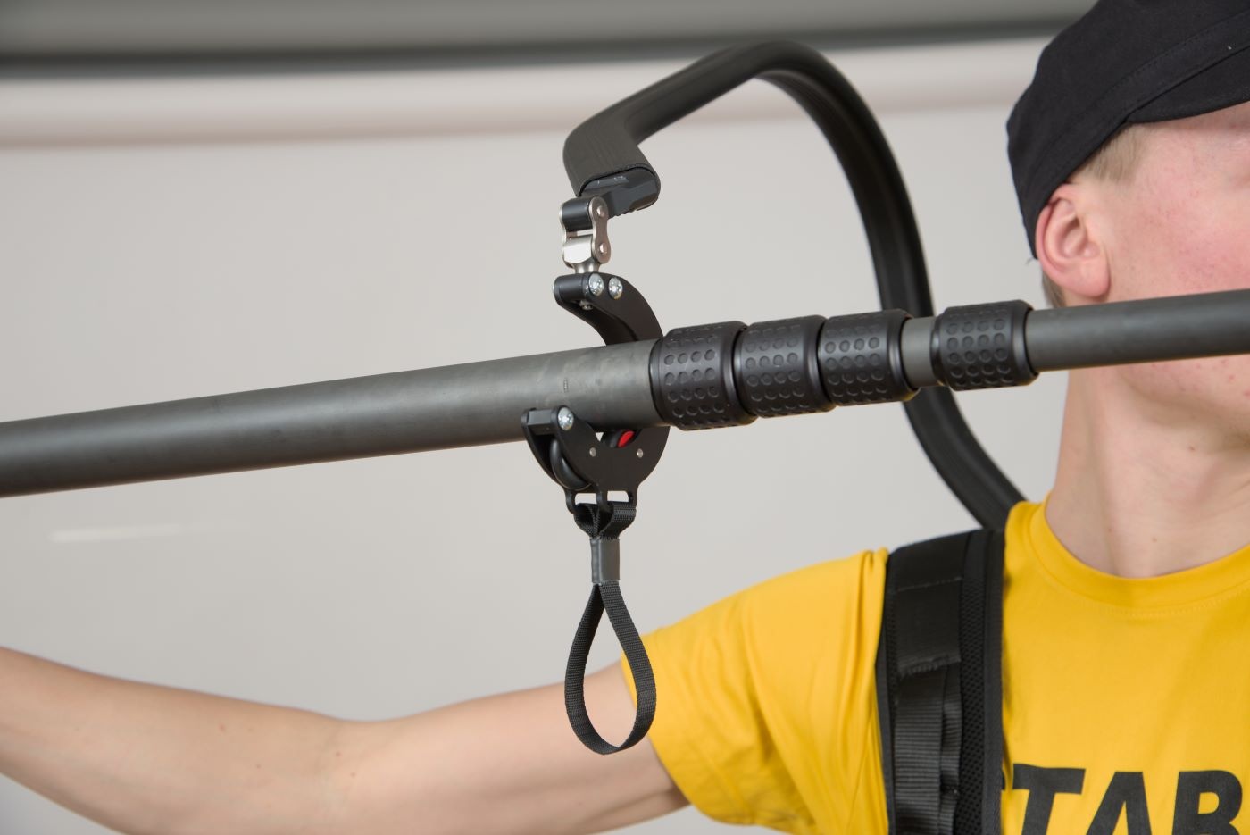 By turning the knob in the back, the Boom Rig can be adjusted to fit your boom perfectly. It can take weights between 2.5-10 kg (5.5-22 lbs).