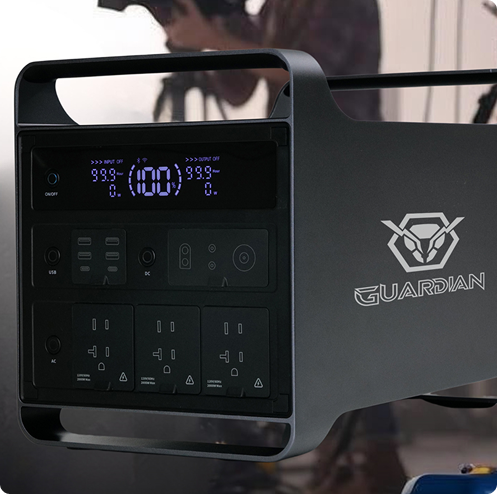 2008Wh* power solution currently on the market. The new internal chemistry ensures absolute safety, reliability and faster charge times. Equipped with 3x 240V 50/60Hz AC Outputs ensuring Pure Sine Wave output, this allows the GUARDIAN to be used in a vast array of scenarios without the fear of incompatibility or failure. All encased in a small form factor and weighing less than 17kg, allows it to be transported and stored easily without issue.
