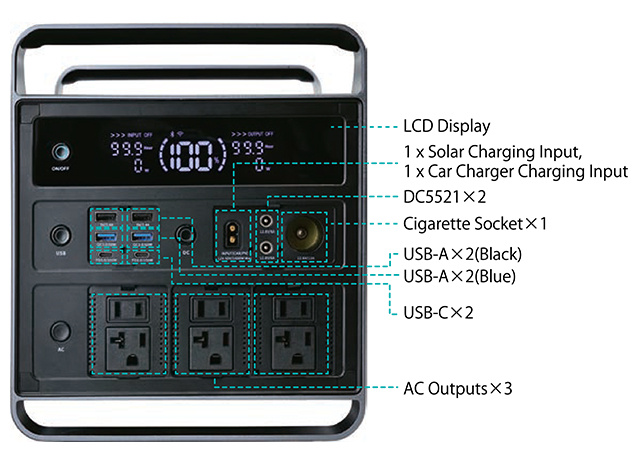 IDX 2008 Wh capacity for reliable power supply on the go, nominal power 2000 W / peak power up to 3000 W (<1 second)