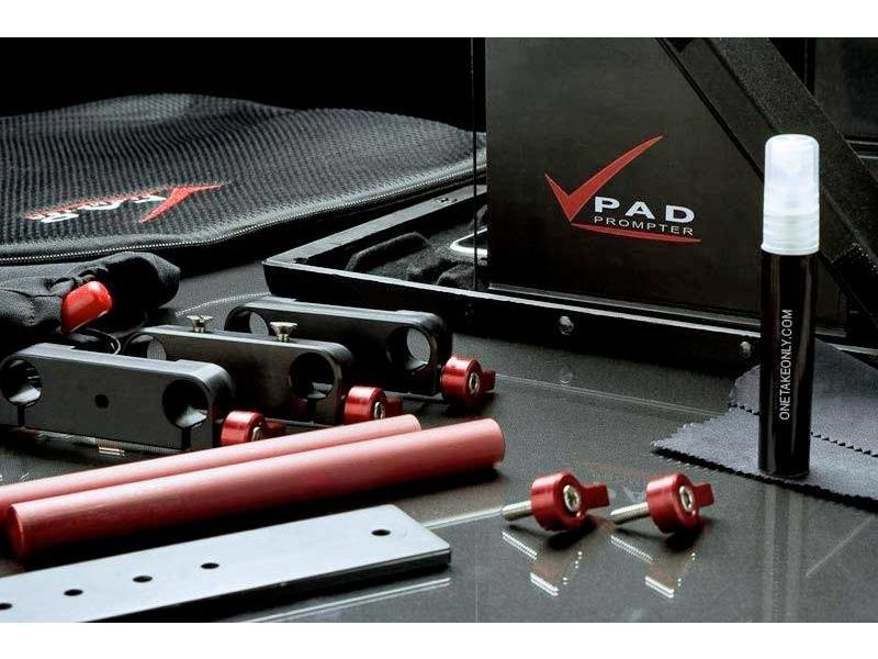 The Pad Prompter for 15mm Rigs, from Onetakeonly, is a compact tablet teleprompter designed to be attached to the front of your 15mm camera rig with included rods and rod adapters. It's meant to be used attached to your rig while your rig is mounted on a tripod. It supports all iPads measuring up to 10" diagonally, including iPad mini (iPad Pro is not supported). It also supports all other similarly sized tablets. When you remove all the rods and rod adapters, you can collapse the Pad Prompter to a flat 1.2" thick, making it very easy to carry in most bags or simply in your hands. (A camera rig is not included. All you'll need at minimum is a tripod-mount baseplate with 15mm rods.)